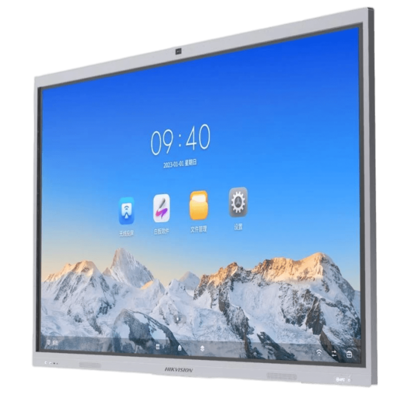 Ecran Tactile interactif 65" UHD 4K AVEC CAMERA INTEGREE. Avec une résolution de 3840 × 2160 et une luminosité de 480 nits. Conception anti-reflets et anti-obstruction pour une interaction fluide. Système Android 14 intégré, certifié EDLA. Deux ports USB Type-C à pleine fonctionnalité, prenant en charge une puissance totale allant jusqu'à 100 W et une entrée DisplayPort 1.2.(HIKVISION DS-D5C65RB/B2L)